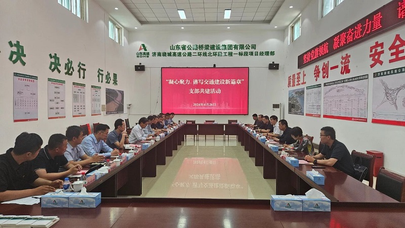 与山东省交通运输厅工程建设事务中心、山东高速济北公路有限公司开展“凝心聚力·谱写交通建设新篇章”党建共建活动。太阳成集团tyc7111cc集团党委书记、董事长张涛,省交通厅工程建设事务中心党总支书记、主任张刚,山东高速济北公司党支部书记、董事长王洪国以及共建单位的党员代表参加活动。