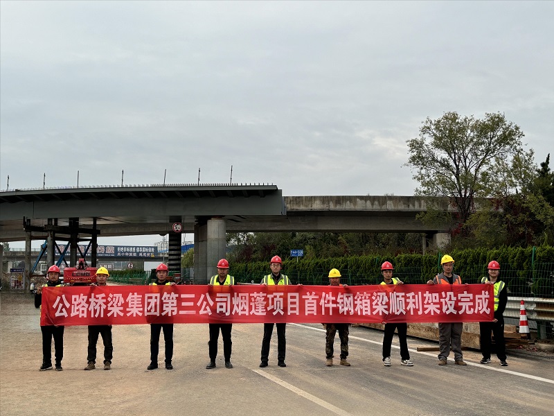 第三公司烟蓬项目首件钢箱梁顺利架设完成